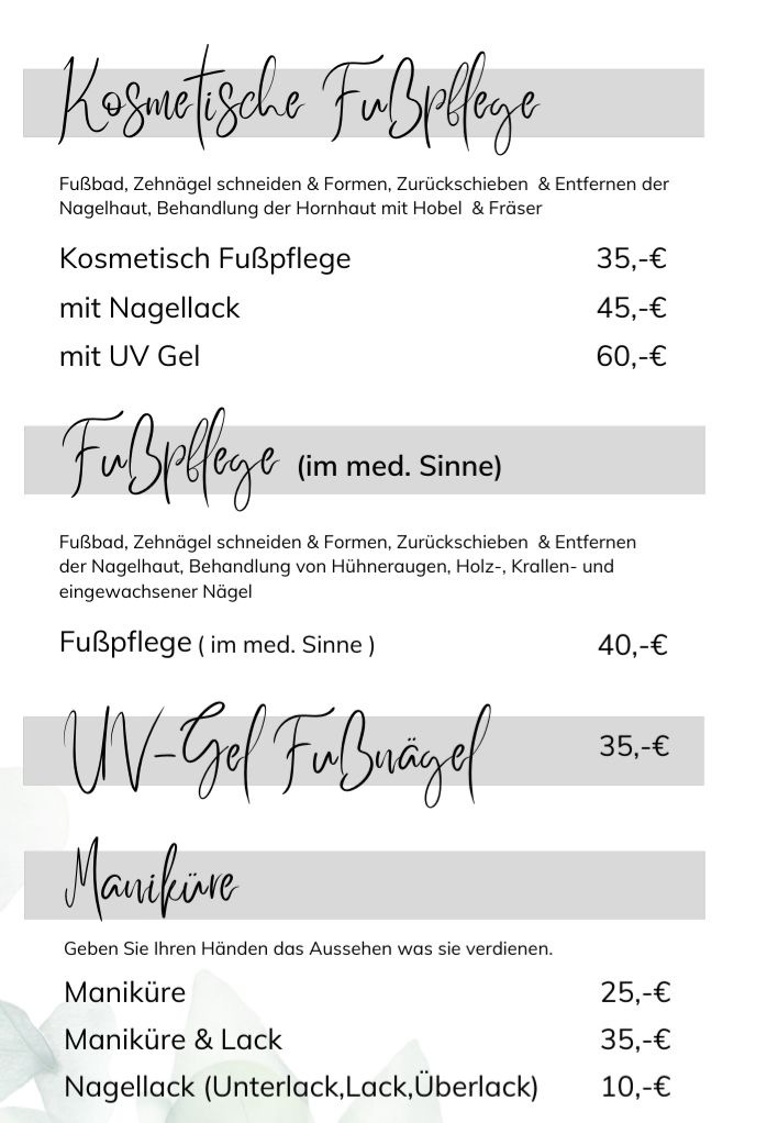 - Kosmetische Fußpflege – 35,– €
