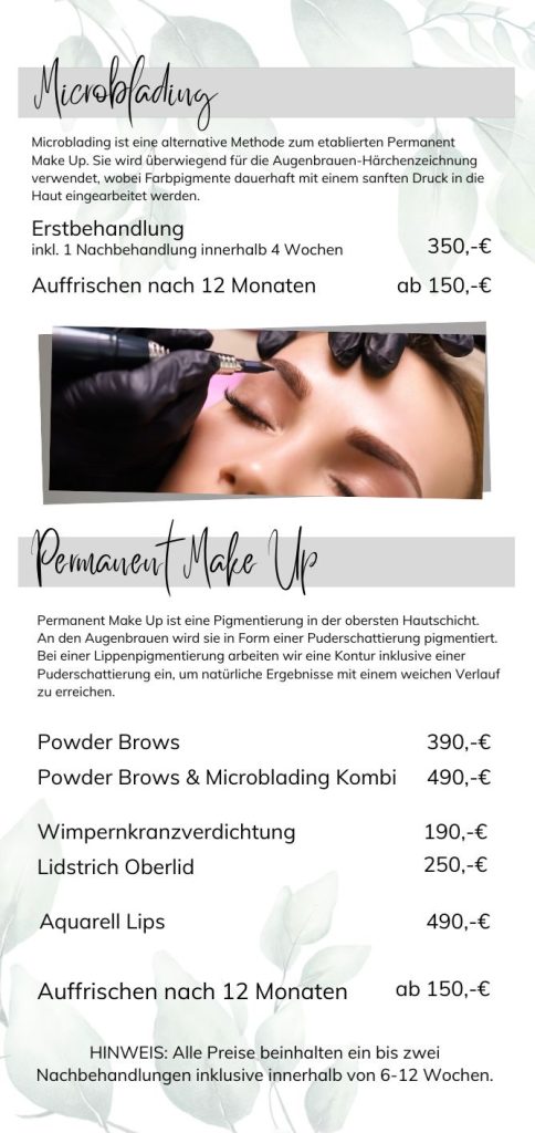 Alle Preise beinhalten 1–2 Nachbehandlungen innerhalb von 6–12 Wochen.